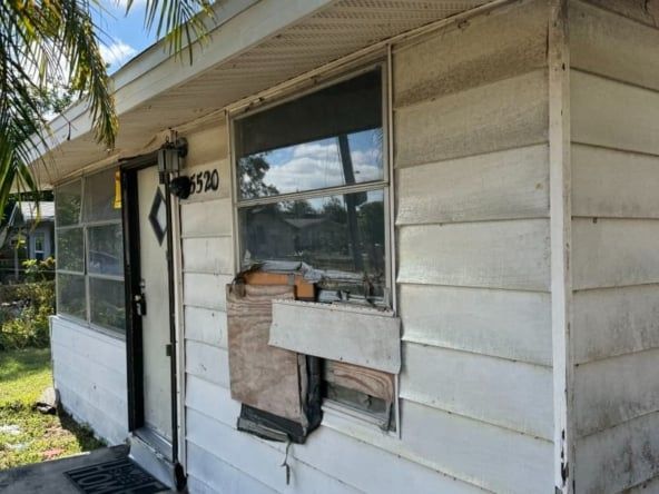 This 3-bedroom, 2-bath frame home has 878 sq ft of living space, including the front porch, which is enclosed and under air. Built in 1950, the property sits in the Lealman / Arcadian Heights pocket of St. Petersburg, where small renovated homes are consistently selling in the mid-$200s to low-$300s. The home will be delivered vacant at closing.